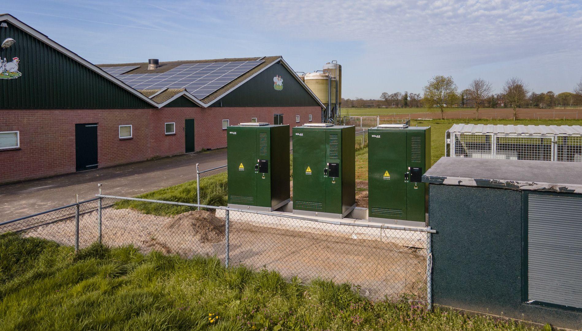 Bij pluimveebedrijf Bloemendal in Barneveld plaatsten wij drie SolaX-accu’s (3 × 200 kWh) voor de opslag van de energie, afkomstig van de zonnepanelen. Met deze opslag kan de energie, veelal opgewekt midden op de dag, gebruikt worden aan de randen van de dag wanneer er gevoerd wordt, de lichten aan zijn en de warmtevraag hoger is. Meer weten over dit project? U leest het hier.