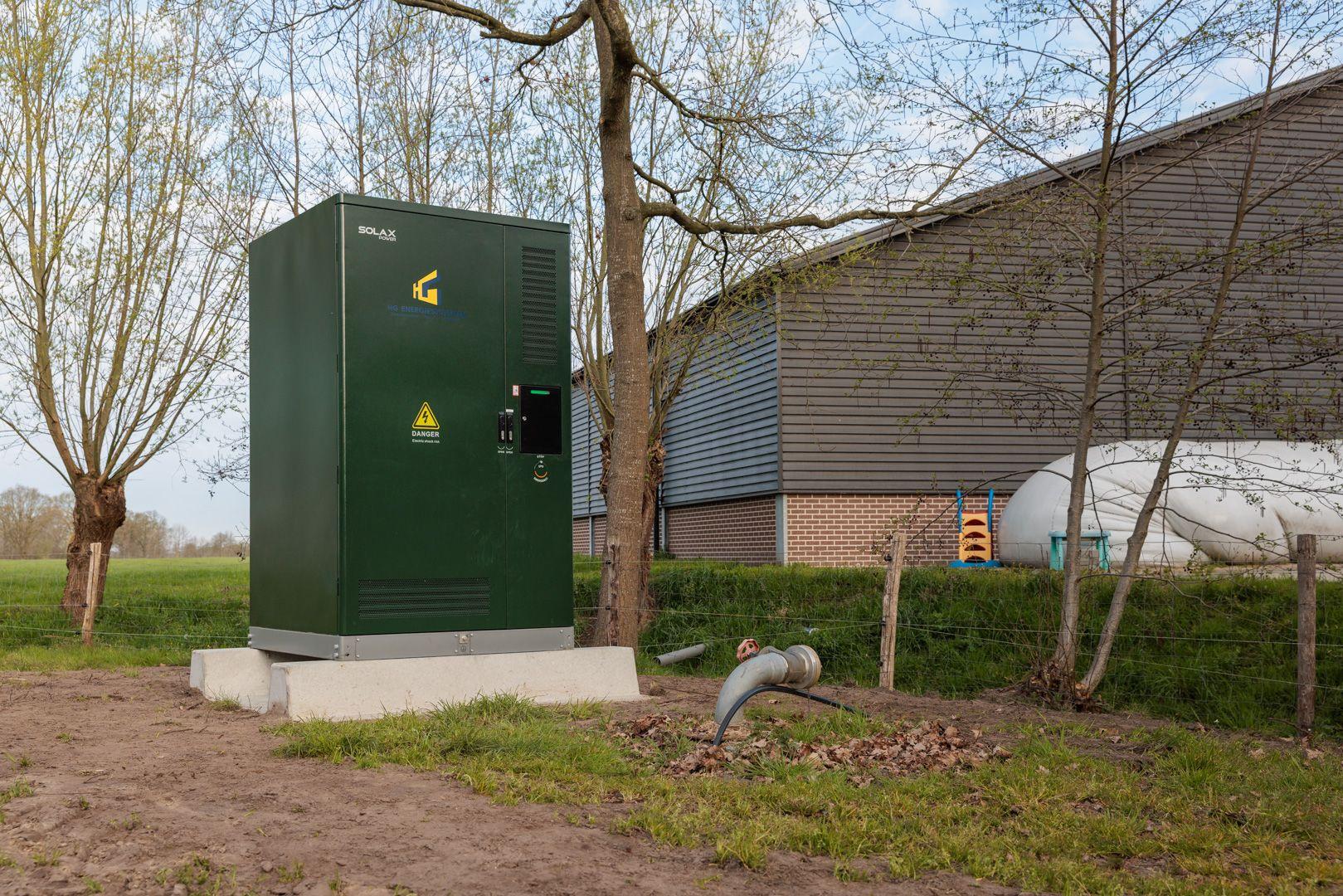 - Opslag van zonnestroom voor eigen gebruik in de stal of schuur