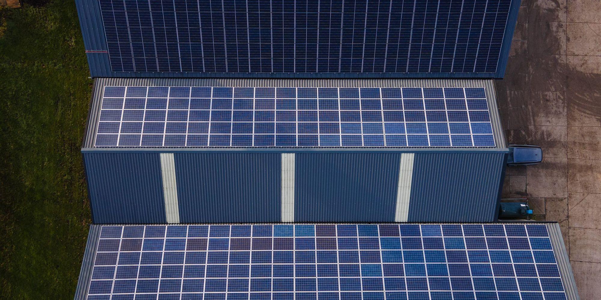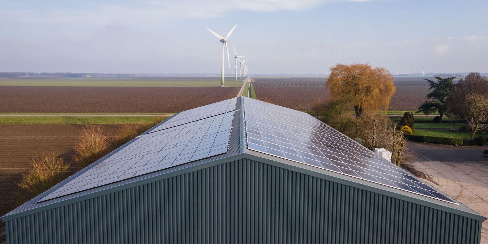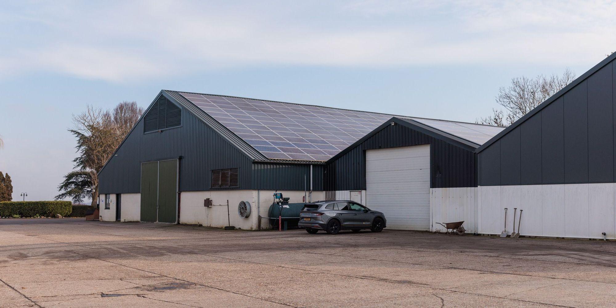 Voor Maatschap Vrolijk in Lelystad HG Montage de vier bestaande daken vervangen. HG Energiesystemen heeft deze vervolgens voorzien van zonnepanelen en twee Solax accu's geplaatst voor de opslag van de energie.