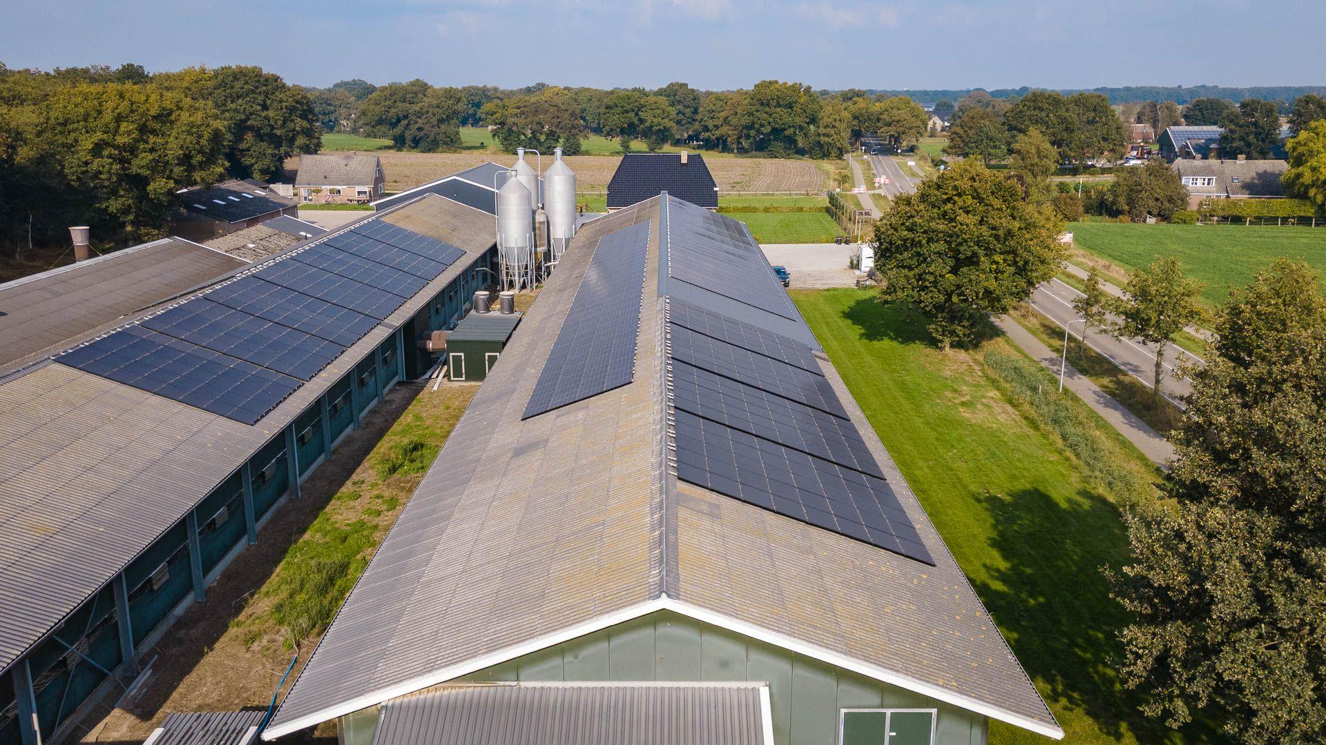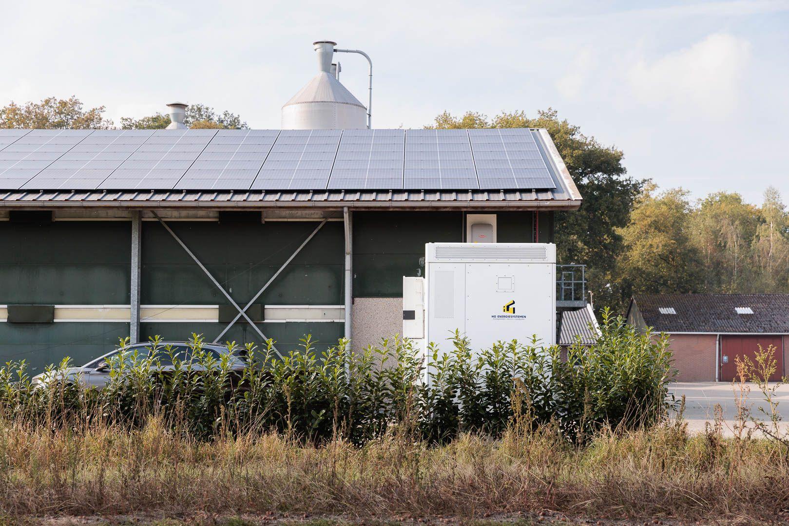 Voor melkveehouder Veelers in Nutter heeft HG Montage een aantal daken gerenoveerd en/of vervangen. HG Energiesystemen heeft twee van de daken voorzien van zonnepanelen en een Solax accu geplaatst voor de opslag van deze energie.